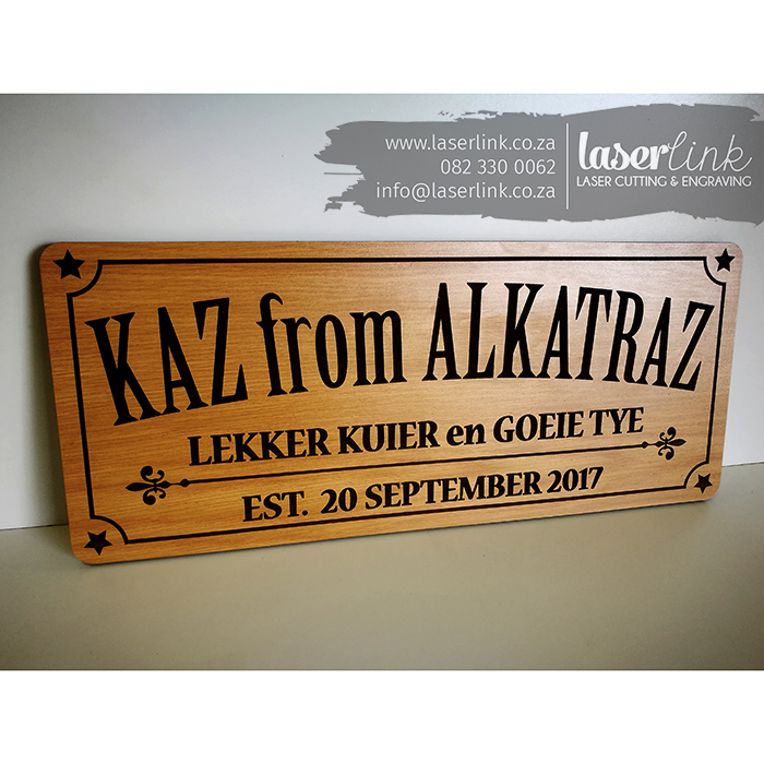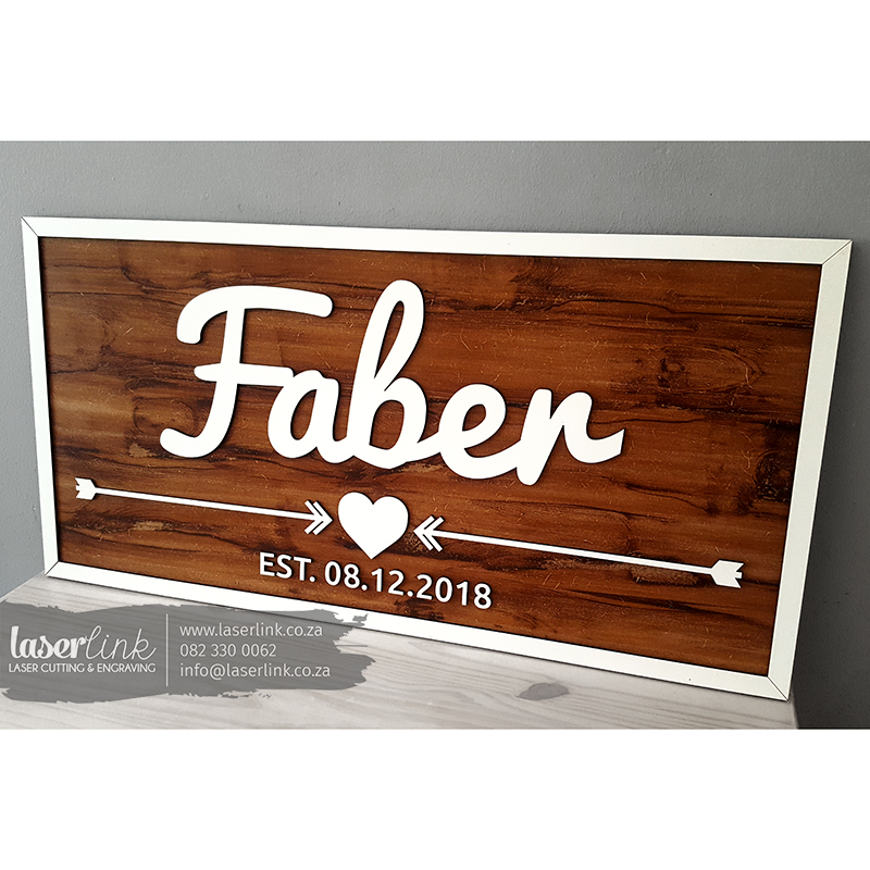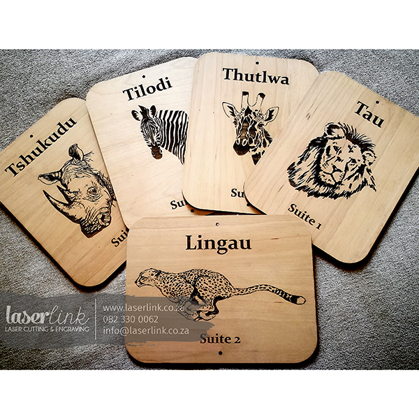 We specialize in laser cutting wooden signs for company branding and sign boards. With laser cutting we are able to create a 3 dimensional effect using laser cut letters for beautiful signage boards. We give each order our undivided attention to ensure work of the highest quality. We offer in-house graphic designing for our customers therefore we will be more than happy to assist with the designing of your laser cut wooden sign board. If you would like a quote, please send us an image of a type of sign board that you are looking for. Please include size and text required so that we can quote accordingly. We cater for any occasion, may it be for corporate use or personal use.